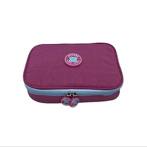 O estojo possui material resistente, amplo espaço interno, uma divisória central com elásticos que auxiliam na organização fechamento em zíper com puxadores emborrachados. Assim será possível carregar lápis de cor, caneta, canetinha e seus acessórios com segurança, conforto e estilo