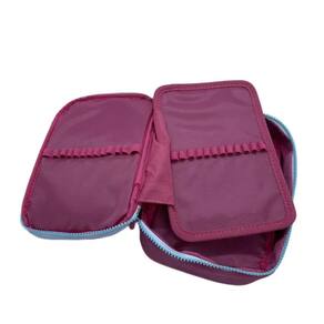 O estojo possui material resistente, amplo espaço interno, uma divisória central com elásticos que auxiliam na organização fechamento em zíper com puxadores emborrachados. Assim será possível carregar lápis de cor, caneta, canetinha e seus acessórios com segurança, conforto e estilo