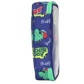 Estojo Box Teen Rabisk Dino Skatista - Modelo RKD5009E Material Durável: Confeccionado em Poliéster 300, este estojo oferece resistência e durabilidade, ideal para o uso diário. Design Único: Estampa exclusiva de Dino Skatista com frontal em PVC que dá um toque holográfico diferenciado, destacando a originalidade e o estilo da marca Rabisk. Armazenamento Organizado: Equipado com uma aba interna que possui elásticos para organizar lápis e canetas de forma prática e segura, facilitando o acesso a todos os seus itens. Compartimento com Zíper Embutido: Mantenha objetos menores protegidos e evite a bagunça no seu estojo.