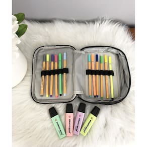 Estojo 100 pens Jumbo linha SGV - Acompanha somente o estojo - As fotos com as canetas são ilustrativas e elas não vão junto com o estojo Dimensões Aproximadas: Altura: 7 cm Largura: 17 cm Comprimento: 23 cm Peso: 150g.