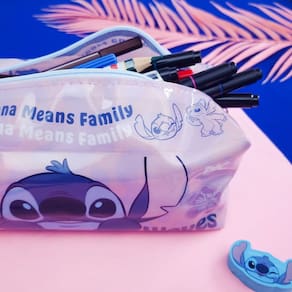 Personagem: Stitch da Disney Design espaçoso com fecho de correr seguro Material PVC resistente e fácil de limpar Perfeito para o uso escolar ou como necessaire de viagem Estilo divertido e colorido que agrada a todas as idades