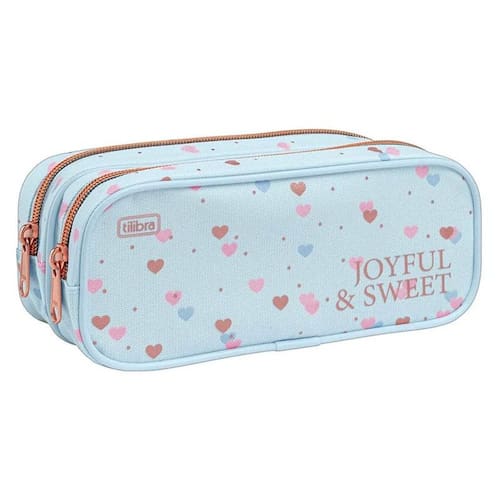 Estojo Escolar Infantil Duplo Académie Coração Metalizado Azul - Tilibra