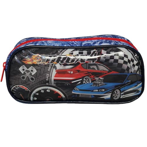 Estojo grande para guardar lápis, canetas, giz de cera, borracha, apontador, ufa, bastante coisa né Ele é lindo com a estampa dos carros apostando corrida e na parte de baixo do estojo tem escrito várias vezes hotwheels, bem lúdico. Ele tem 1 compartimento com zíper. Recomendado para crianças com mais de 3 anos de idade. Certificado pelo INMETRO REGISTRO 003927/2020