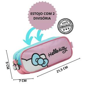 O estojo Hello Kitty Candy Colors é a escolha perfeita para quem busca estilo e funcionalidade. Com um design encantador em tons pastéis, é ideal para armazenar os materiais escolares. Leveza, praticidade e muito estilo se encontram nesse estojo Tween, perfeito para crianças e jovens fãs da gatinha. Detalhes Especiais Puxadores Emborrachados: Facilita a abertura e o fechamento dos compartimentos, proporcionando um toque suave e maior durabilidade. Forro Exclusivo: Interior com design exclusivo da Hello Kitty, adicionando um toque especial a cada detalhe. Material: Nylon de alta qualidade e Poliéster 600D Dimensões: - Largura: 21.5cm - Altura: 9cm - Comprimento: 7cm Peso: 90gr Marca: Não Informado
