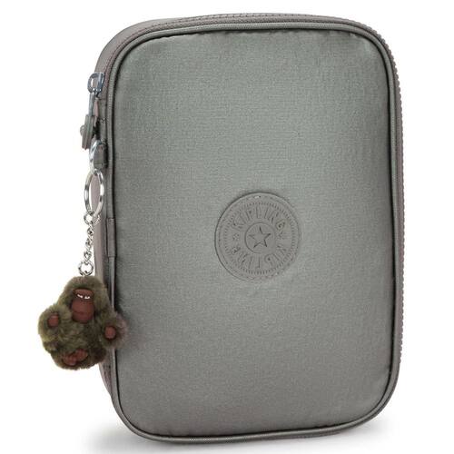 Estojo Escolar/ Necessaire Kipling 100 Pens - AC6117 - Moon Grey Metallic Com chaveiro Blaire O 100 Pens é um estojo estruturado e espaçoso, o maior estojo de canetas, forte e resistente com uma divisória central que possui elástico para acomodar 26 lápis e ou canetas. O modelo é ideal para o dia a dia escolar ou até mesmo para guardar maquiagem. Material: 100% Poliéster Reciclado Dimensões 21x15x5 cm Peso: 0.3 Kg Volume: 1.5 L Características: Compartimento principal com fecho Separador interno Divisor com elásticos para 26 canetas/lápis Marca: Não Informado