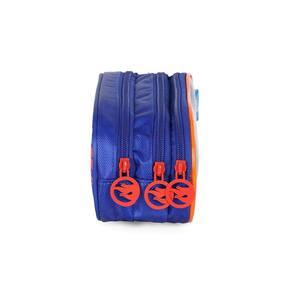 Estojo é super espaçoso e cabe todos os seus materiais de escrita. Ele é composto por os materiais vão soltos dentro do compartimento.