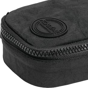 Cor: Preto Compartimento: um Detalhe: aplique emborrachado Divisória Central Fechamento: em zíper Forro Garantia: Garantia contra defeitos de fabricação Material: Nylon Puxador: em metal