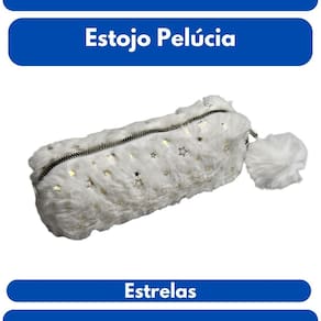 Estojo de Pelúcia Branco Estrelas com Glitter e Zíper Arco-Íris - Charme e Organização!