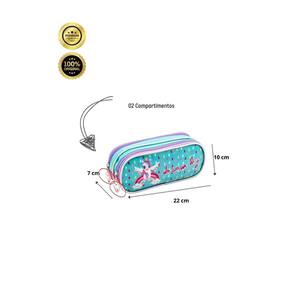 Dois confeccionado em Poliéster Fechamento em zíper Compartimentos espaçosos Design exclusivo Medidas aproximadas: Altura: 10 cm Largura: 7 cm Comprimento: 22 cm CUIDADOS: - Guarde em um local seco e arejado evitando locais úmidos. - Evite colocar excesso de peso no produto para não forçar os zíperes e costuras. - Proteja os objetos cortantes e/ou pontiagudos evitando o contato direto com o produto. - Evitar altas temperaturas. - Cores claras poderão manchar quando em contato com outros objetos ou roupas de cores pigmentadas.