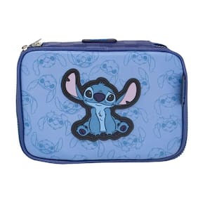 - prático e confortável - design com detalhes exclusivos stitch - confeccionado em tecido sintético e nylon - fechamento em zíper com puxadores de metal - possui duas partes internas com divisória central - elástico para acomodar 24 lápis, canetas ou canetinhas.