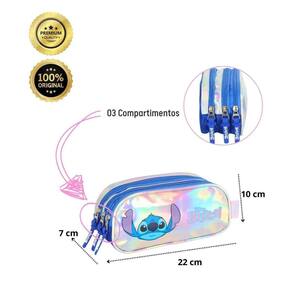 Estojo Escolar Triplo Prata Stitch Luxcel