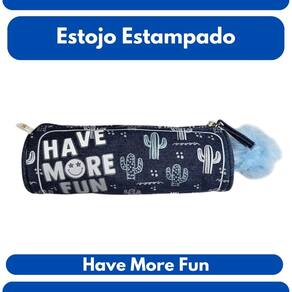 Traga mais alegria e organização para o seu dia com o Estojo "Have More Fun" Cactos Pompom Jeans Azul Escolar! Ideal para quem busca um acessório vibrante, divertido e funcional para escola, trabalho ou lazer.