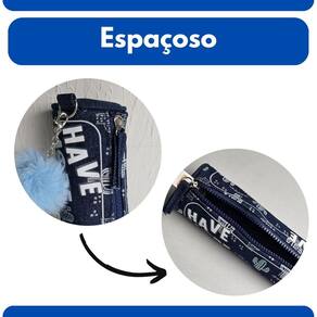 Design Cheio de Personalidade e Diversão: Estilo "Jeans" Casual: Fabricado em um tecido azul escuro de alta qualidade que imita jeans, oferecendo um visual moderno, resistente e super descolado. Mensagem Inspiradora "HAVE MORE FUN": Destaque-se com a frase motivacional "HAVE MORE FUN" (Divirta-se Mais) em letras brancas grandes e em relevo. A palavra "MORE" é artisticamente estilizada com um rosto sorridente e estrelas nos olhos, garantindo um toque de alegria contagiante. Estampa de Cactos Divertida: O fundo azul é adornado com um padrão repetido de cactos brancos estilizados de vários tamanhos e formatos, pontinhos e linhas onduladas, criando uma atmosfera lúdica e levemente "Western". Pompom Fofo e Vibrante: Um pompom macio e fofo na cor azul claro está preso ao zíper, complementando a paleta de cores e adicionando um charme extra. Formato Cilíndrico: Design alongado e prático, perfeito para acomodar diversos materiais com facilidade. Organização com Muita Praticidade: Espaço Generoso: Ideal para guardar e organizar lápis, canetas, borrachas, apontadores, marcadores, pequenos materiais de escritório, maquiagens ou outros acessórios que você precisa ter sempre à mão. Fechamento Seguro: Equipado com um zíper resistente na parte superior, que mantém seus pertences protegidos e bem organizados, evitando perdas. Leve e Portátil: Com apenas 33 gramas e dimensões otimizadas, é fácil de transportar na mochila, bolsa ou até mesmo como um acessório de mão. Versatilidade para o Dia a Dia: Não é apenas um estojo escolar! Use-o como necessaire para maquiagem, porta-objetos para a bolsa, ou para organizar pequenos itens pessoais. É o acessório perfeito para quem adora itens com personalidade e uma mensagem positiva.
