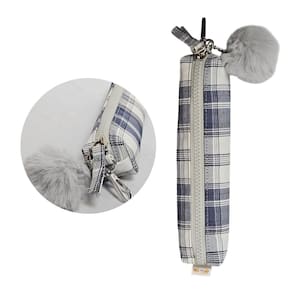 Estojo Multiuso Design Xadrez Pastel com Pompom Fofo Removível - Leve e Compacto