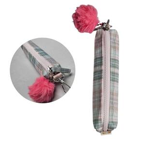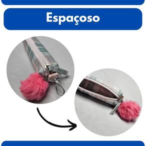 Estojo Multiuso Design Xadrez Pastel com Pompom Fofo Removível - Leve e Compacto
