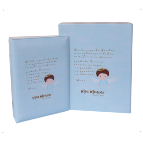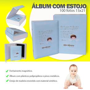Estojo Imantado com Álbum para 100 Fotos 15x21 - BATIZADO AZUL Bebê Menino Batismo Anjinho