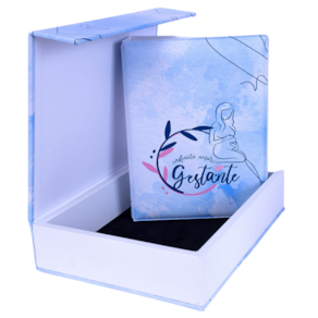 - Estojo de MDF revestido em material sintético com fechamento magnético.