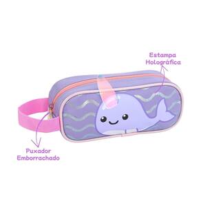 Características : - Estampa temática de Narval, com cores Holográficas e brilhantes - Formato simples e leve, fácil de transportar - Fechamento em zíper resistente - Espaço ideal para lápis, canetas, borracha e pequenos itens escolares - Material resistente e fácil de limpar - Detalhe em 3D - Alça de Mão