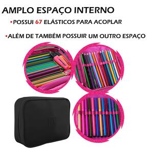 Amplo espaço interno: Possui 2 abas divisórias que te entrega 6 opções para colocar os itens, sendo 5 lugares somando 67 elásticos e 1 outro espaço para itens soltos.