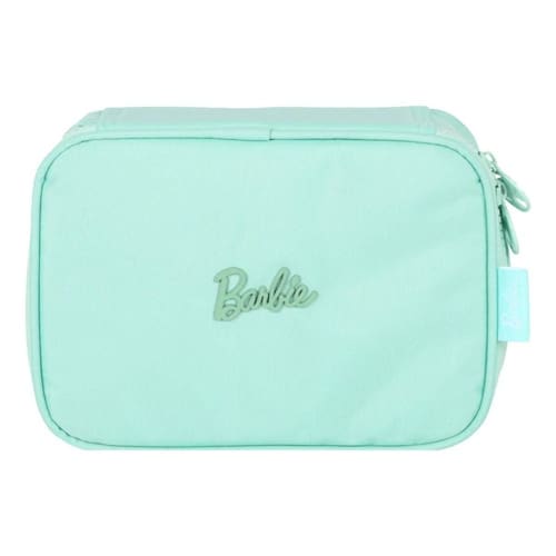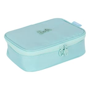 O design clean e elegante é realçado pelo logotipo Barbie em relevo, que traz uma assinatura discreta e sofisticada ao estojo. O fecho em zíper duplo com pingentes personalizados completa o visual, adicionando um toque divertido e prático ao mesmo tempo.