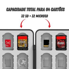 Capacidade para 32 cartões sd + 32 cartões micro sd