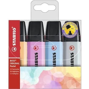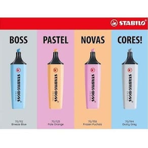 Os marcadores Stabilo Boss são os mais vendidos do mundo, e agora você pode ter as cores pastel em um único kit. Com tecnologia Anti-Dry-Out, eles ficam protegidos por até 4 horas sem secar, mesmo destampados. Isso significa que você pode usá-los por mais tempo, sem se preocupar com a durabilidade da tinta.