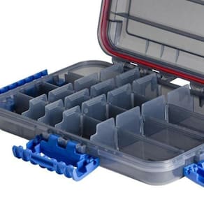 O estojo multiuso Water Resistant é ideal para pescadores manterem seus itens de pesca organizados e acessíveis. A Caixa Water Resistant Tackle Box MWR270 tem fechamento com três travas de segurança e borracha para vedação. O estojo Marine Sports Tackle Box Water Resistant MWR355 é resistente à água. Contém 16 divisórias removíveis. Ideal para iscas artificiais, giradores, snaps, chumbadas entre outros. Na cor fumê, protegendo os itens armazenados contra os raios solares.