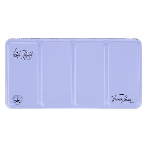 Estojo Metal com Tampa para acondicionamento de 35 Pastilhas de Aquarela White Nights.Robusto, reutilizável e com exterior de esmalte brilhante e interior de esmalte branco com uma paleta desdobrável para mistura de cores.Crie sua própria paleta de cores com as pastilhas White Nights nesta charmosa lata ergonômicas.Estojo de Metal: 2x11x22cm