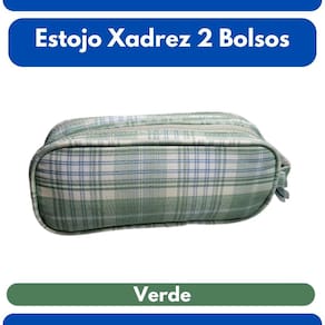 Não perca a oportunidade de ter um item funcional, versátil e cheio de estilo que vai simplificar sua rotina e adicionar um toque de charme! Adquira já o seu Estojo Necessaire Duplo Xadrez Verde com Pompom.