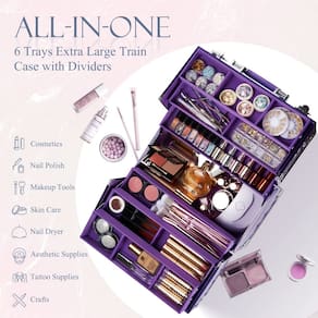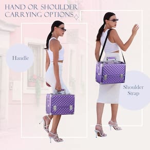 Frenessa Makeup Train Case Beauty Cosmetic Box Professional, bandejas de 6 camadas, organizador de armazenamento de joias com fechadura, presente perfeito para mulheres e meninas - roxo brilhante - ? Estilo roxo elegante: este estojo de maquiagem profissional grande vem com design de diamantes roxos, combinando com a moldura curva para criar um estojo de maquiagem fino e durável. - ? Bandeja ajustável com divisórias: a bandeja cantilever extensível de 6 camadas com estrutura de compartimentos e fundo espaçoso garante espaço espaçoso. Ideal para organizar os cosméticos, como: base, sombras, batons, máscaras, delineadores de olhos, pós, esmaltes, itens de cabeleireiro. Também é adequado para armazenar artesanatos, carregadores, cabos USB, ferramentas de pesca ou outros acessórios eletrônicos. - ? Portátil e segura: a maleta de maquiagem tem um tamanho portátil com uma grande alça antiderrapante e uma alça de ombro durável anexada. Também pode ser trancado com chave para privacidade e segurança em caso de viagem. - ? Durável e protetor: alumínio de grau A durável e resistente em todas as estruturas e uma estrutura de alta qualidade para maior durabilidade e proteção. Não se preocupe com a quebra do recipiente de vidro; o tecido que pode ser limpo pode limpar facilmente a maquiagem perdida. A superfície impermeável torna esta caixa de cosméticos um excelente protetor para cosméticos ao ar livre. Tamanho portátil: 12,6 polegadas x 7,12 polegadas x 9,84 polegadas. - ? Perfeito para mulheres: um estojo ideal para guardar maquiagem, mantém sua cômoda limpa e arrumada. É elegante o suficiente como presente e guardará muitas ótimas lembranças. Seus amigos ou entes queridos ficariam mais felizes ao receber no Dia dos Namorados, Natal, Ano Novo, Aniversário, Casamento e assim por diante.