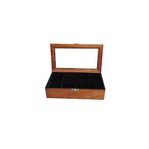 Compre agora o Estojo para 08 Relógios - Tabaco flocado de Preto e mantenha sua coleção de relógios protegida e organizada com estilo e elegância!