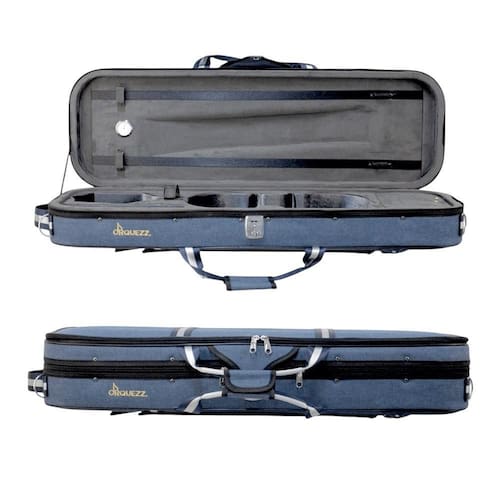 Material: isopor Tecido: oxford de alta qualidade Interno: acabamento almofadado e com veludo Marca: orquezz Modelo: retangular luxo Serve para: violino 4/4 O estojo luxo da orquezz possui um excelente acabamento e elegância, traz facilidade e leveza para o músico transportar seu instrumento, acessórios e partituras. É muito espaçoso e permite a colocação de dois arcos, da espaleira, bolso externo para leves partituras E têm ainda um compartimento interno para colocação de breu ou outros acessórios menores. Seus detalhes, desde o fecho em metal com chave até o higrômetro, contam com qualidade e beleza. Possui: Manta para proteção do instrumento Correias para carregar nas costas Informações adicionais: Cor externa: azul claro Cor interna: cinza Dimensões do estojo 4/4: Comprimento: 79cm Largura: 26cm Profundidade: 14cm Peso: 1.120 kg Bolso recomendado para o transporte de partituras e métodos de até 50 páginas. Não recomendamos o transporte de hinários, bíblias ou similares. Marca: Não Informado