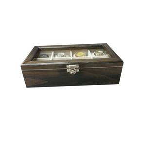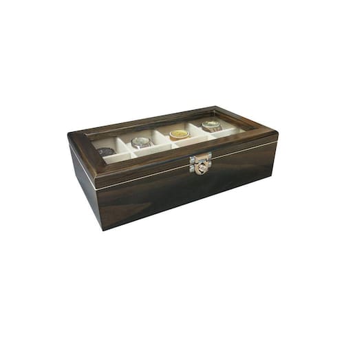 Prático e luxuoso, na linha madeira maciça encontrarmos um toque vintage, objeto decorativo onde são visíveis os veios naturais da madeira. Nossos estojos irão facilitar seu dia a dia com a organização e segurança que sua coleção precisa, além de proporcionar um ambiente mais sofisticado e elegante.Produzida com madeira natural de reflorestamento. Escolhida rigorosamente, totalmente tratada, tingida e envernizada externamente. Internamente, inclusive as divisórias são revestidas com nylon aveludado e as almofadas que acompanham o produto, normalmente são também em tecido aveludado. Na linha madeira maciça é possível observar os veios naturais da madeira. As dobradiças não são aparentes e possuem um limitador. A tampa possui visor com vidro transparente. Acompanha um fecho giratório de pressão em metal, ideal para colocar cadeado. Seus relógios sempre bem protegidos e acomodados confortavelmente, com toda segurança e facilidade no manuseio. Características das caixas para relógio:- Produto fabricado em madeira maciça de qualidade,- Não empena,- Revestimento interno aveludado, inclusive as divisórias,- Fecho giratório de pressão em metal suporta cadeado ,- Tampa de vidro 2 mm,- Acompanha almofadas para todos os casulos- Medidas aproximadas dos casulos larg x comp x alt : 7,5 x 7,5 x 7,0 cm.Relógios não acompanham o estojo - Imagens meramente ilustrativas