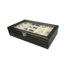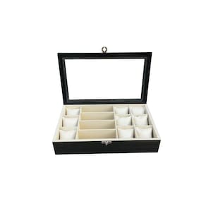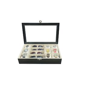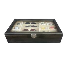 Prático e luxuoso, na linha madeira maciça encontrarmos um toque vintage, objeto decorativo onde são visíveis os veios naturais da madeira. Nossos estojos irão facilitar seu dia a dia com a organização e segurança que sua coleção precisa, além de proporcionar um ambiente mais sofisticado e elegante. Produzida com madeira natural de reflorestamento. Escolhida rigorosamente, totalmente tratada, tingida e envernizada externamente. Internamente, inclusive as divisórias são revestidas com nylon aveludado e as almofadas que acompanham o produto, normalmente são também em tecido aveludado. Na linha madeira maciça é possível observar os veios naturais da madeira. As dobradiças não são aparentes e possuem um limitador. A tampa possui visor com vidro transparente. Acompanha um fecho giratório de pressão em metal, ideal para colocar cadeado. Seus relógios sempre bem protegidos e acomodados confortavelmente, com toda segurança e facilidade no manuseio. Características da caixa: - Produto fabricado em madeira maciça de qualidade, - Não empena, - Ébano flocado de bege - Revestimento interno aveludado, inclusive as divisórias, - Fecho giratório de pressão em metal (suporta cadeado), - Tampa de vidro 2 mm, - Acompanha almofadas nos casulos para Relógio. - Porta óculos - Medidas aproximadas dos casulos para Relógio (larg x comp x alt): 7,5 x 7,5 x 7,0 cm. Relógios e óculos não acompanham o estojo - Imagens meramente ilustrativas