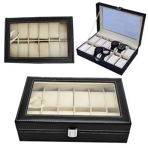 Este estojo é a solução perfeita para organizar e proteger sua coleção de relógios. Com 12 compartimentos individuais revestidos em veludo preto, seus relógios estarão seguros e livres de riscos. O design elegante e compacto se encaixa perfeitamente em qualquer ambiente.