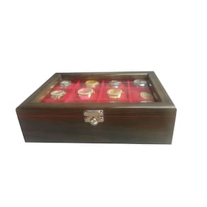 Prático e luxuoso, na linha madeira maciça encontrarmos um toque vintage, objeto decorativo onde são visíveis os veios naturais da madeira. Nossos estojos irão facilitar seu dia a dia com a organização e segurança que sua coleção precisa, além de proporcionar um ambiente mais sofisticado e elegante. Produzida com madeira natural de reflorestamento. Escolhida rigorosamente, tratada com fungicidas e anti-cupins. Envernizada externamente com verniz poliuretano industrial. Internamente as laterais e divisórias são revestidas com nylon aveludado. E as almofadas que acompanham o produto, normalmente são também em tecido aveludado. Na linha madeira maciça é possível observar os veios naturais da madeira. As dobradiças não são aparentes e possuem um limitador. A tampa possui visor com vidro transparente. Acompanha um fecho giratório em metal, ideal para colocar cadeado. Seus relógios sempre bem protegidos e acomodados confortavelmente, com toda segurança e facilidade no manuseio. Características das caixas para relógio: - Produto fabricado em madeira maciça de qualidade - Padrão Ébano - Não empena, não trinca, não racha - Revestimento interno aveludado, inclusive as divisórias - Fecho giratório em metal suporta cadeado - Tampa de vidro 2 milímetros - Acompanha almofadas para todos os casulos - Medidas aproximadas dos casulos larg x comp x alt : 7,5 x 7,5 x 7,5 cm Relógios não acompanham o estojo - Imagens meramente ilustrativas Marca: Não Informado Ean: 7898668010355