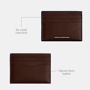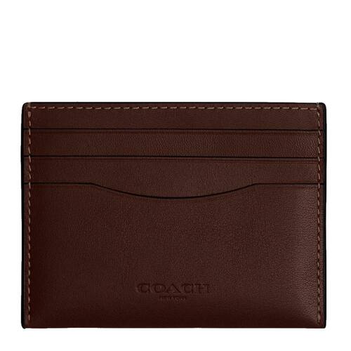 Coach Estojo de cartão plano masculino, Bordo, Estojo de cartão plano - Esta capa fina de couro polido Coach Card cabe perfeitamente no seu bolso ou bolsa pequena. Feita de lona revestida exclusiva e couro de bezerro refinado de grão natural e forro de poliéster. Projetado para conveniência, possui seis compartimentos para