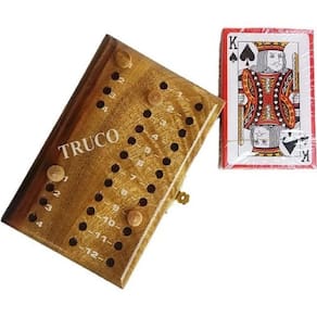 Estojo para Jogo de Truco com Baralho e Marcador - Cód. 9012Além de ser um ótimo item decorativo, o estojo para Truco também é ideal como presente para aquele seu amigo que adora uma partida de Truco, mas é exigente com qualidade.Prático, Elegante e Funcional. O item que não pde faltar nos seus momentos de descontração e lazer.Material muito resistente e com acabamento diferenciado, feito e pintado a mão nos mínimos detalhes. MATERIAL: Madeira de LeiMEDIDAS: 8cm (Largura) x 12,5 cm (Comprimento) 3,5 cm (Espessura)CONTEÚDO :- 01 Estojo em madeira maciça envernizada, com alto brilho, com marcador de pontuação na tampa.- 04 Pinus de madeira para a Marcação- 01 Jogo de BaralhoEnvio Imediato!