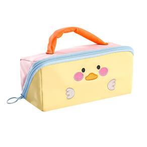 Material: Peso do tecido: 127 g Tamanho: 200 mm* 80 mm* 80 mm Design adorável de pato — Apresenta uma alegre cara de pato bordada com bochechas rosadas, criando um estilo divertido e estético que torna o estudo e o trabalho de escritório mais divertidos. Armazenamento de grande capacidade — O interior espaçoso acomoda facilmente canetas, lápis, borrachas, marcadores, tesouras, réguas e outros itens essenciais de papelaria, mantendo tudo organizado. Durável e leve — Feita de tecido resistente, esta bolsa de lápis é leve, mas resistente ao desgaste, proporcionando uso diário duradouro para estudantes e profissionais. Alça portátil e zíper liso — vem com uma alça de transporte conveniente e um fecho de zíper suave, facilitando o transporte entre salas de aula, escritórios ou durante viagens. Uso versátil — Não é apenas uma bolsa para canetas, mas também funciona como estojo de cosméticos, organizador de viagens ou bolsa de armazenamento, adequado para uso escolar, no escritório, em casa e em qualquer lugar.