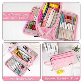 Estojo grande Sooez, bolsa de lápis de grande capacidade, bolsa para canetas com 3 compartimentos, organizador portátil de papelaria de lona com zíper, lindo material escolar estético para adolescentes e meninas e universitários, roxo