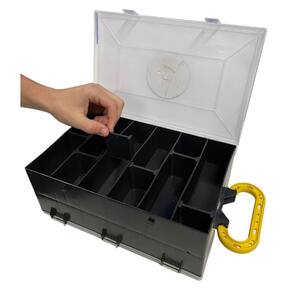 Estojo Organizador Para Pesca Doublebox com Divisores ajustáveis/removíveis. estojo conta com 24 compartimentos que são possíveis ajustá-los o tamanho, ou até mesmo removê-los. Ideal para organização de anzóis, iscas, chumbadas, bóias, entre outros objetos. ESPECIFICAÇÕES Marca: SummerModelo: DoubleboxMedidas: 30cmx12cmx20cmCompartimentos: 24 com divisões ajustáveis/removíveisCor: Preto Imagens Ilustrativas