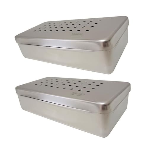 Com um design perfurado, o estojo permite a ventilação adequada dos instrumentos, evitando o acúmulo de umidade e garantindo sua esterilidade.