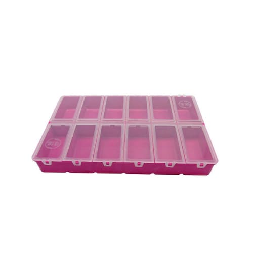 Estojo Pesca HI Industrial ES-12-N Polipropileno 12 Divisões 27,5x17,5x3,5cm - Cor: Rosa