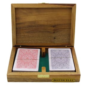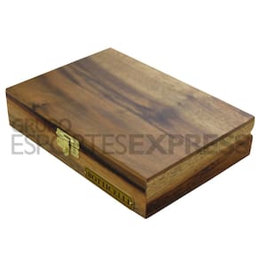 O Porta Baralho em Madeira para 2 Unidades da Botticelli é um item elegante e funcional, fabricado com madeira de Imbuia, conhecida por sua beleza natural e resistência.A Imbuia, uma madeira nobre de origem brasileira, se destaca pela tonalidade rica e pelos veios marcantes, proporcionando uma aparência sofisticada e distinta.Este estojo não só protege, mas também valoriza os baralhos com seu toque de requinte. Equipado com dobradiças e fecho em latão dourado, oferece uma durabilidade excepcional e um charme clássico.Com dimensões de 15,5x10,5x3cm, acomoda dois baralhos de cartas com praticidade e segurança.Ideal para quem aprecia produtos de qualidade e acabamento refinado, este porta baralho é uma excelente opção de presente para entusiastas de jogos de cartas e para aqueles que valorizam estilo e tradição.
