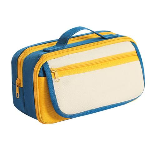 Material: Tecido Peso: 127 g Tamanho: 210* 60* 105 mm Espaçoso e organizado: apresenta um grande design de 9 camadas, oferecendo amplo espaço para organizar canetas, lápis, borrachas e outros materiais escolares com facilidade. Durável e leve: feito de tecido de alta qualidade, este estojo de lápis é durável e leve, perfeito para o uso diário. Uso versátil: adequado para estudantes do ensino fundamental, médio e universitário, bem como adultos que precisam de um organizador de papelaria funcional para uso no escritório. Design elegante: o esquema de cores amarelo e azul brilhante torna este estojo prático e estiloso, adicionando um toque de cor à sua mesa ou bolsa. Portátil e conveniente: equipado com uma alça resistente para facilitar o transporte, tornando-o a escolha ideal para estudantes e profissionais em trânsito.