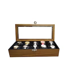 Caixa/estojo 10 Relógios Madeira Cerejeira Flocado de Preto