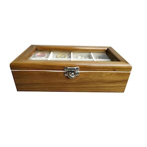 A caixa possui um design vintage e é feita com madeira de alta qualidade, escolhida rigorosamente e tratada para garantir durabilidade e resistência. A parte externa é tingida e envernizada, enquanto a parte interna, incluindo as divisórias, é revestida com nylon aveludado. Além disso, as almofadas que acompanham o estojo também são em tecido aveludado, proporcionando um ambiente seguro e confortável para seus relógios.