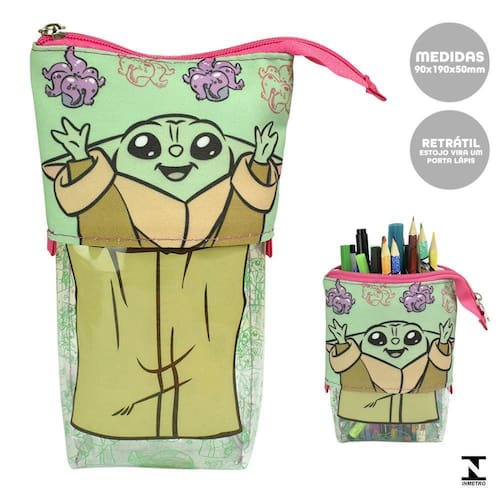 Estojo Retrátil 2 em 1 Mandalorian Baby Yoda Star Wars DAC O Estojo Retrátil Star Wars Mandalorian é maravilhoso, ele é 2 em 1, muito espaçoso e ideal para encontrar todos os seus materiais e facilitar sua rotina, pois esse modelo de estojo tem base firme para virar porta lápis, canetas e pincéis. Um produto totalmente inovador tanto para usar na escola como também no home office Formato: 9 cm x 19 cm x 5 cm Composição: Pvc Cristal e Tecido Detalhes: Com base firme que vira porta caneta. Código: 4218 INMETRO 005 213/2018 O estojo duas funções mais estilosas que você poderia ter Ean: 7908689902307