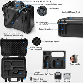 Lekufee Capa rígida à prova d'água para DJI Mini 4 Pro, DJI Mini 3 Pro, Mini 3 Drone, DJI RC 2/RC N2/N1, DJI Goggles 3 (não serve para óculos N3)/2/Integra, DJI RC Motion 2/3 e acessórios (apenas capa) - ?Design personalizado?Esta nova capa rígida à prova d'água Lekufee vem com espuma EVA de camada dupla personalizada e alça de ombro. Projetado para o seu DJI Mini 4 Pro, combo DJI Mini 3 Pro, drone DJI Mini 3, DJI RC 2, DJI RC N2, DJI Goggles Integra, DJI Goggles 3, DJI Goggles 2, DJI RC Motion 3, DJI RC Moiton 2 e outros acessórios DJI Mini Drone. - Capacidade de armazenamento: 1 drone DJI Mini 4/DJI Mini 3 Pro/Mini 3 Drone; 5 mini 4 baterias (inclui bateria interna do drone), 1 controle remoto DJI RC 2/DJI RC-N2/RC-N1, 1 DJI RC Motion 3/RC Motion 2 ou DJI FPV Motion, 1 óculos DJI Integra ou DJI Goggles 3/Goggles 2, 2x Cartão microSD, 2 x Bastões de controle (par), hub de carregamento, 4 hélices DJI Mini 4 (par), conjunto de filtros DJI Mini 4 ND, cabos e mais acessórios DJI Mini 3 Pro. Compartimentos de espuma EVA personalizados mantêm seu combo DJI Mini 4 Pro organizado durante viagens ou transporte - ?Proteção forte?Impermeável e à prova de poeira IP67, revestimento de plástico ABS rígido à prova de abrasão e impacto. Esponja elástica preenchida interna e inserções de espuma EVA personalizadas. Esta capa protetora DJI Mini 4 é antiimpacto, antiextrusão e proteção contra quedas. As capas de câmera Lekufee à prova d'água podem proteger seu drone DJI Mini 3 em condições ambientais adversas. Ideal para aventuras ao ar livre. Adequado para ambientes externos como desertos, praias, florestas tropicais, montanhas de neve, etc. - ?Viagem portátil?Peso: 2,1 kg. Dimensões: 33,5 x 15,5 x 31 cm. Com duas travas de ação, mantenha a capa firmemente fechada usando força de compressão. Com válvula de equilíbrio de pressão de ar, cabo de silicone macio e antiderrapante. Este estojo de transporte DJI Mini 4 Pro pode ser cadeado, protege seu drone DJI Mini 3 a qualquer hora/em qualquer lugar. Esta capa rígida durável é perfeita para sua casa/trabalho/viagem. - ?Serviço de qualidade?Você pode obter: 1 estojo de transporte Lekufee à prova d'água, 1 inserção de espuma EVA de camada dupla, 1 alça de ombro, 1 manual de instruções (sem garantia de versão em português). Nossa garantia de 12 meses sem preocupações/reembolso e atendimento ao cliente amigável. Se você tiver alguma dúvida, sinta-se à vontade para entrar em contato conosco. [Apenas capa]