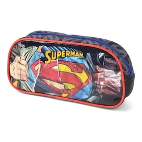 Estojos Super Homem Simples com ziper. Super-homem é um super-herói de histórias em quadrinhos publicadas pela DC Comics. O personagem nasceu no planeta fictício Krypton e tinha o nome de Kal-El. Foi enviado à Terra por seu pai cientista, Jor-El, momentos antes de Krypton explodir. O foguete aterrissou na cidade de Smallville.